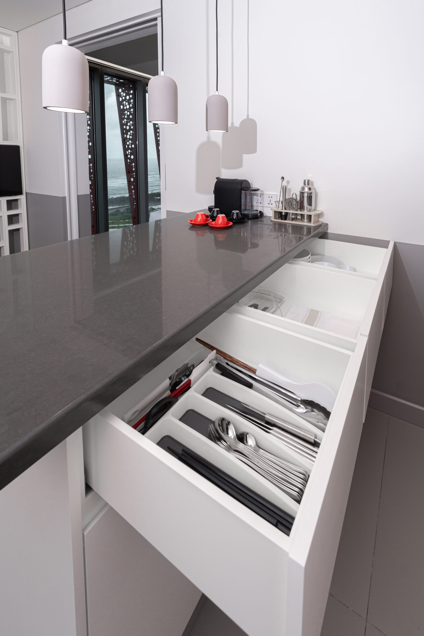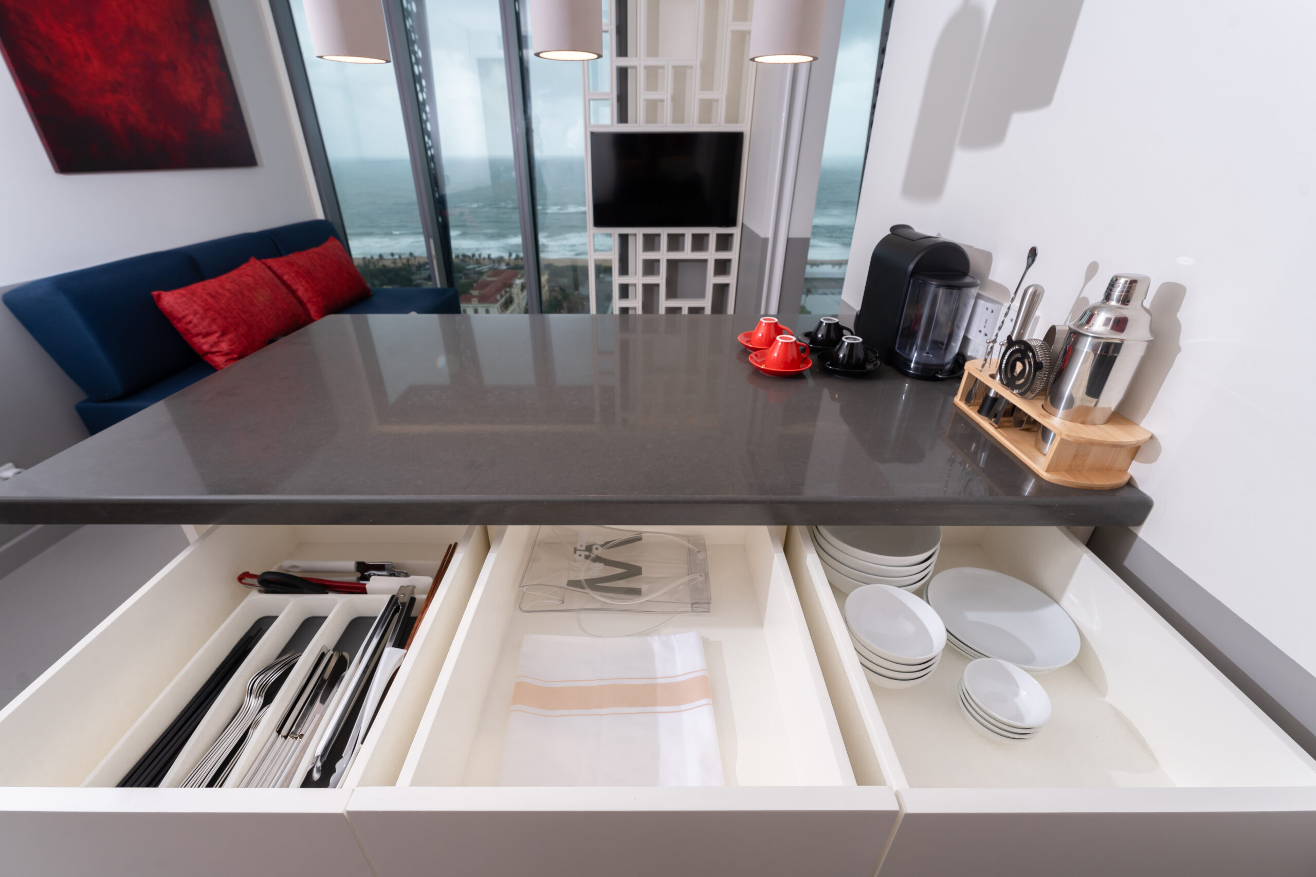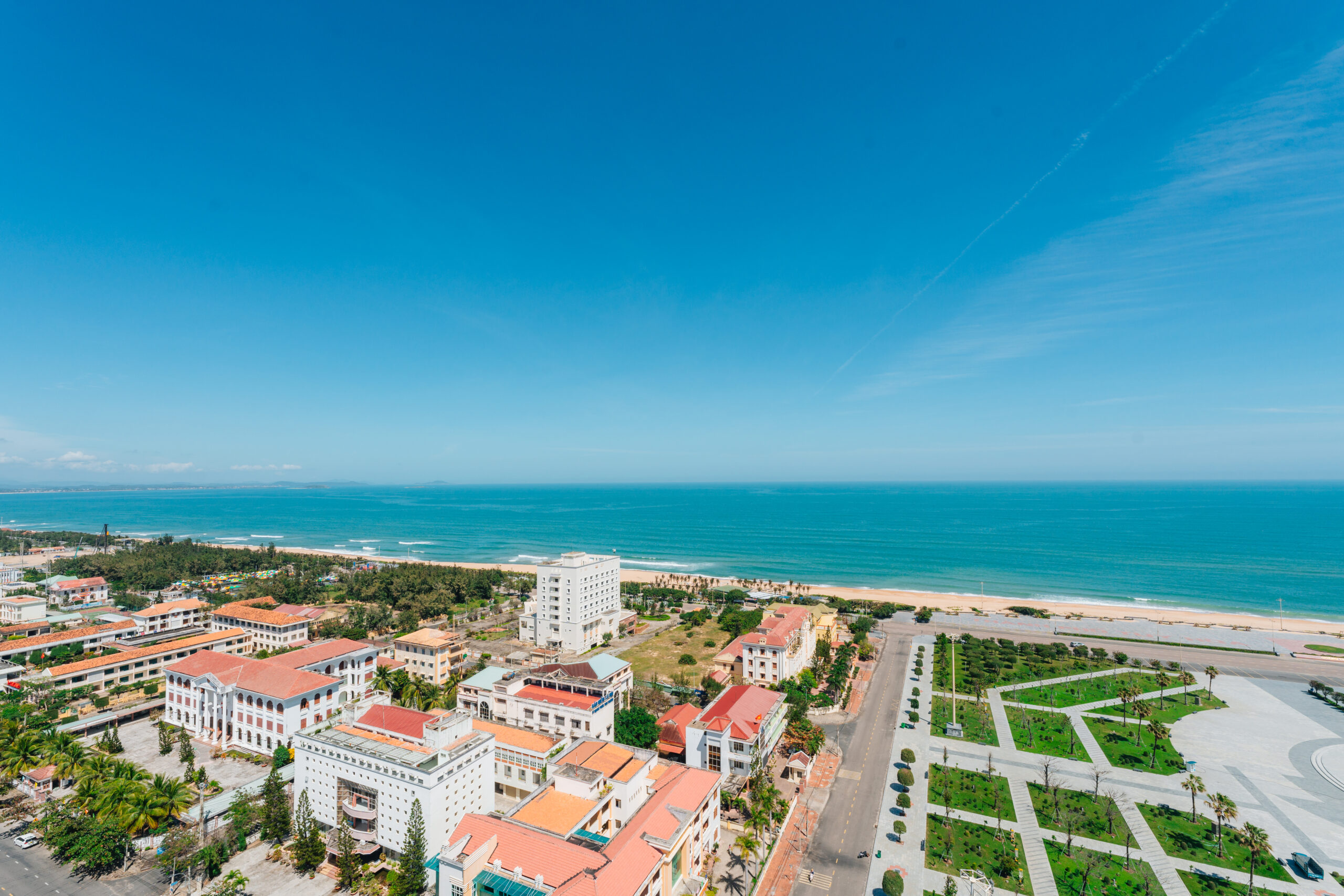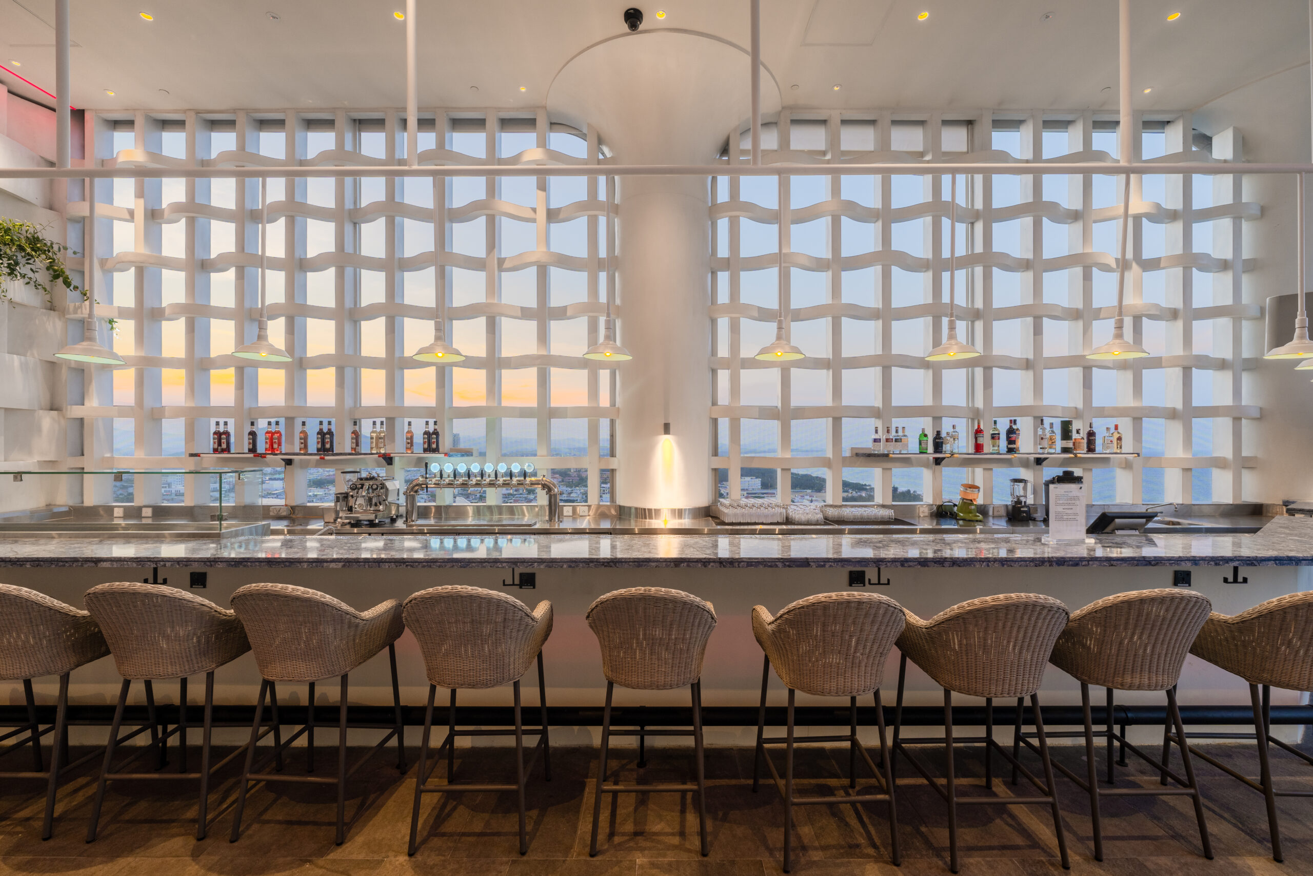 Hãy tưởng tượng sáng thức dậy, anh chỉ cần nhấn nút mở rèm, cả một khoảng trời xanh ngắt của biển Tuy Hòa ùa vào phòng qua lớp kính chạm trần.