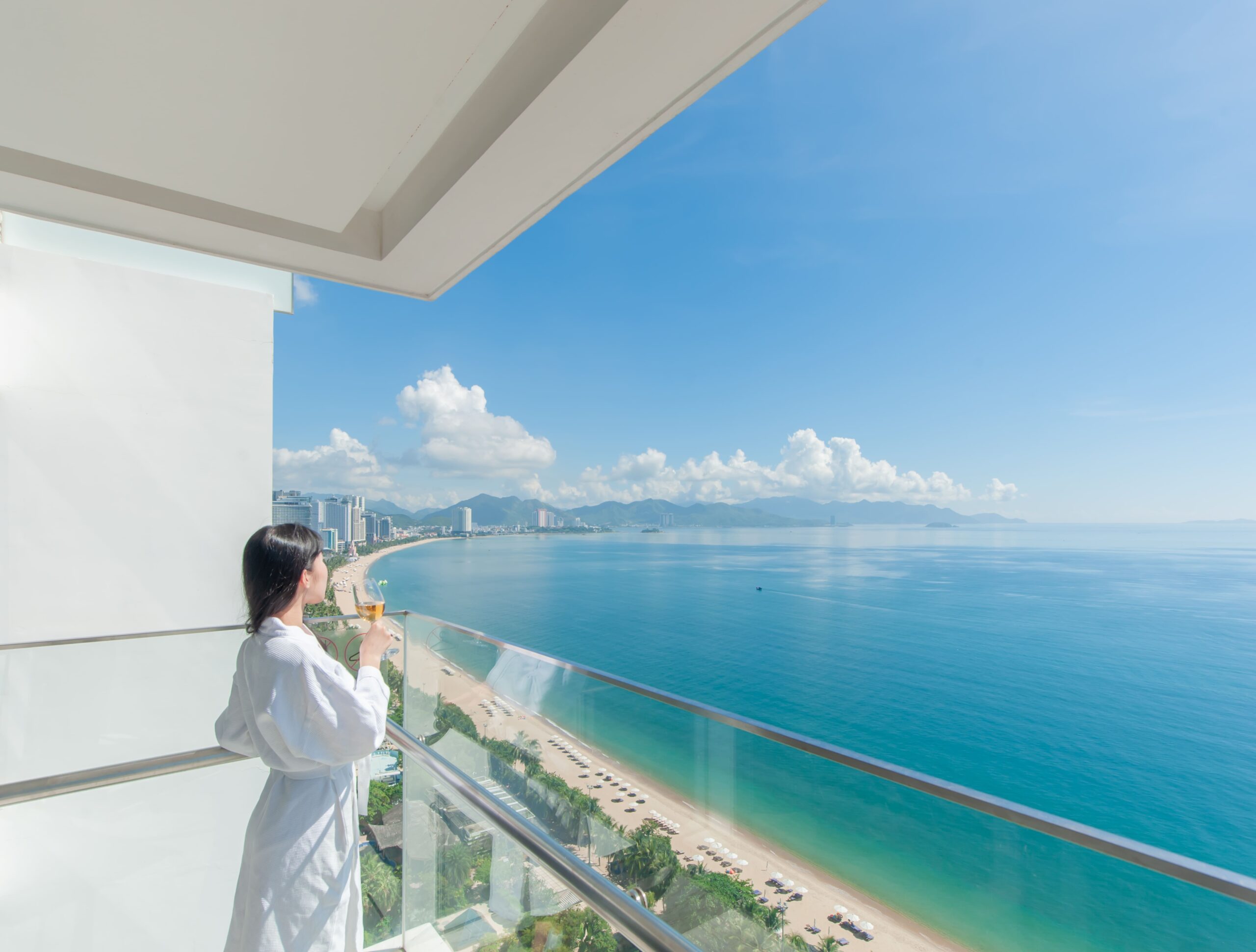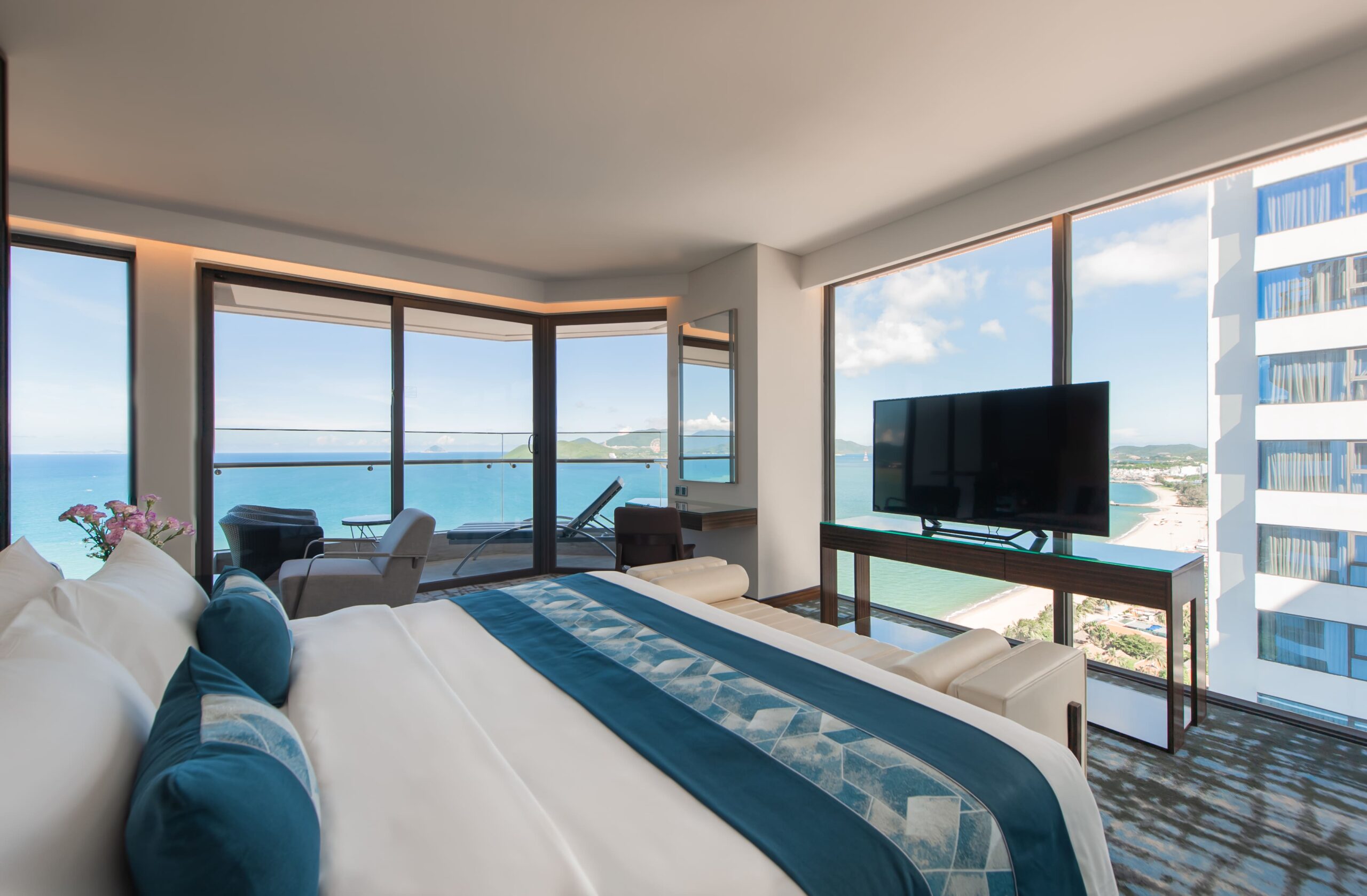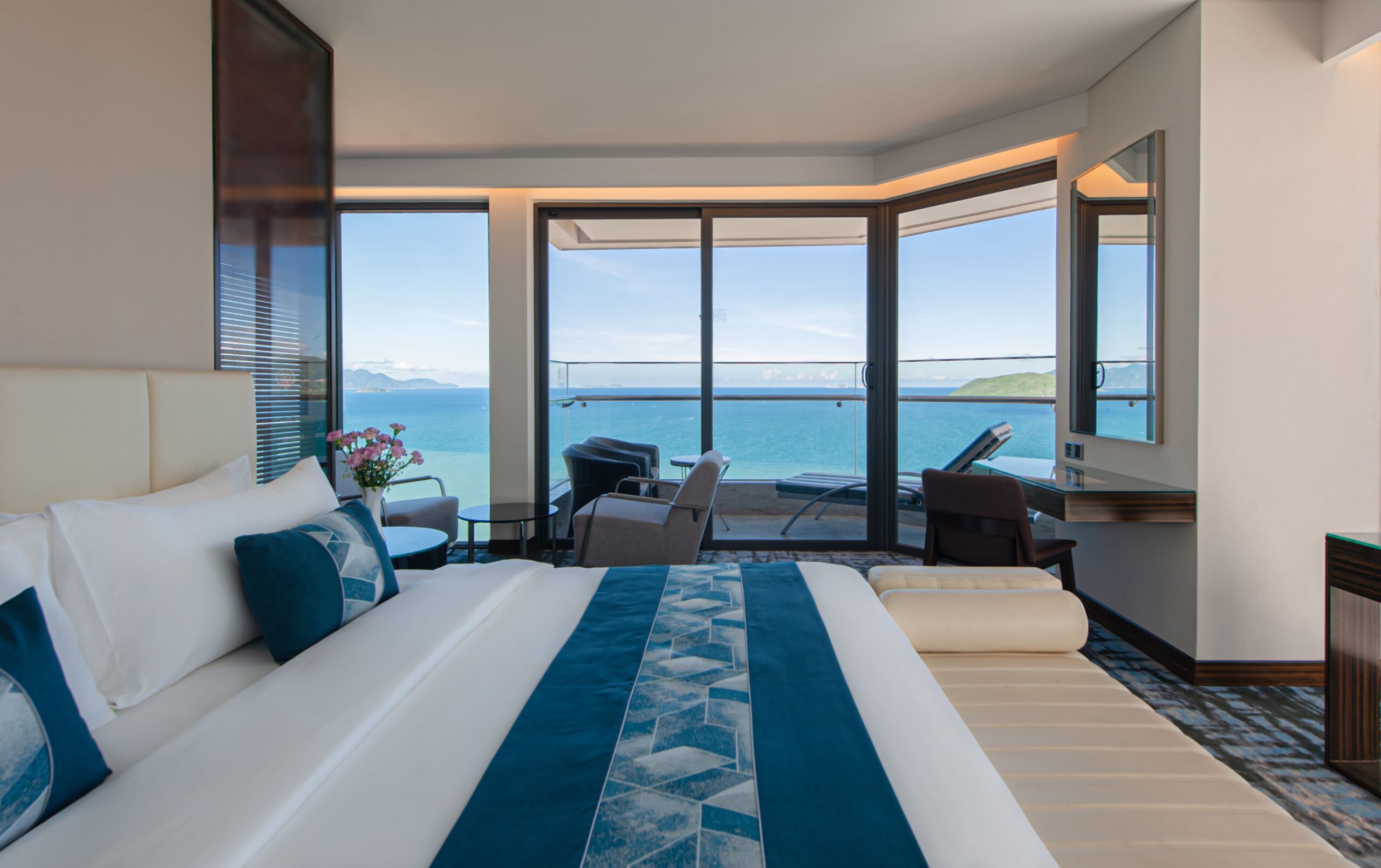Hướng biển trực diện, toàn cảnh đại dương, 1 giường lớn có Ban công ( Giá bao gồm 2 người lớn vs 1 trẻ em dưới 6t )