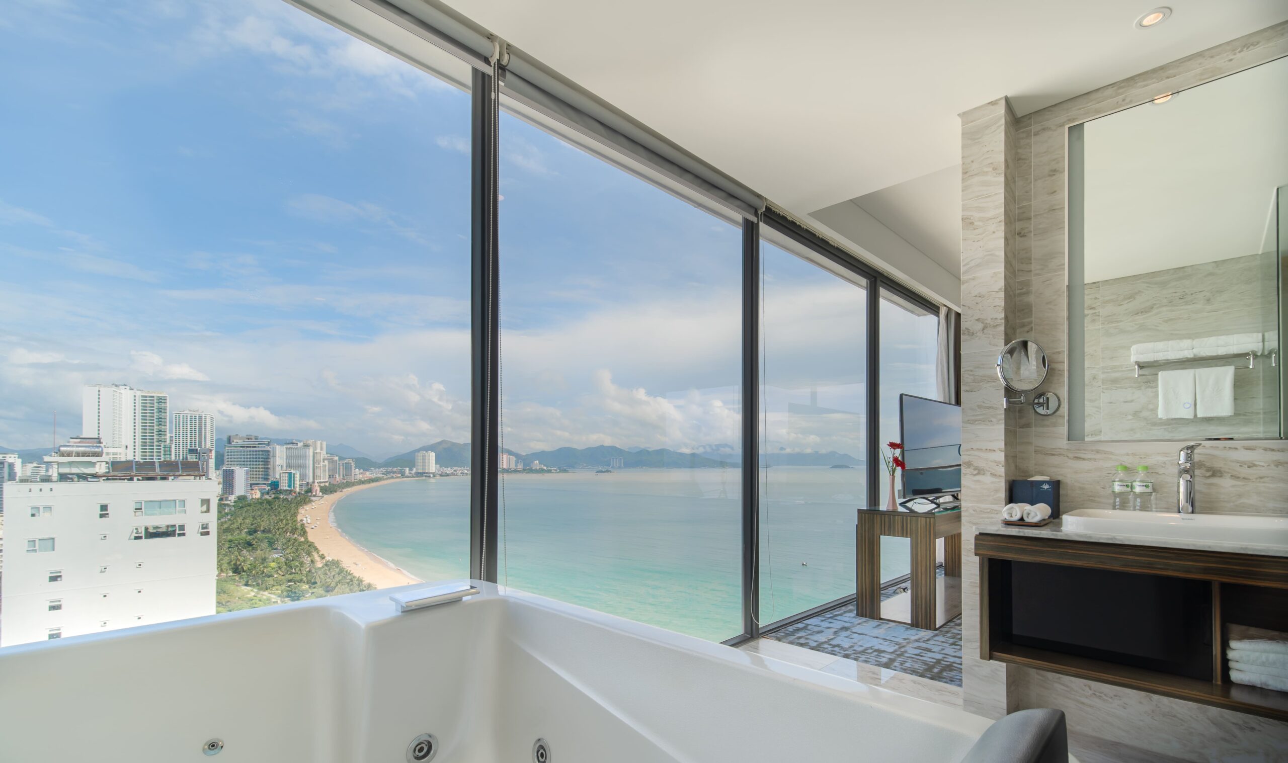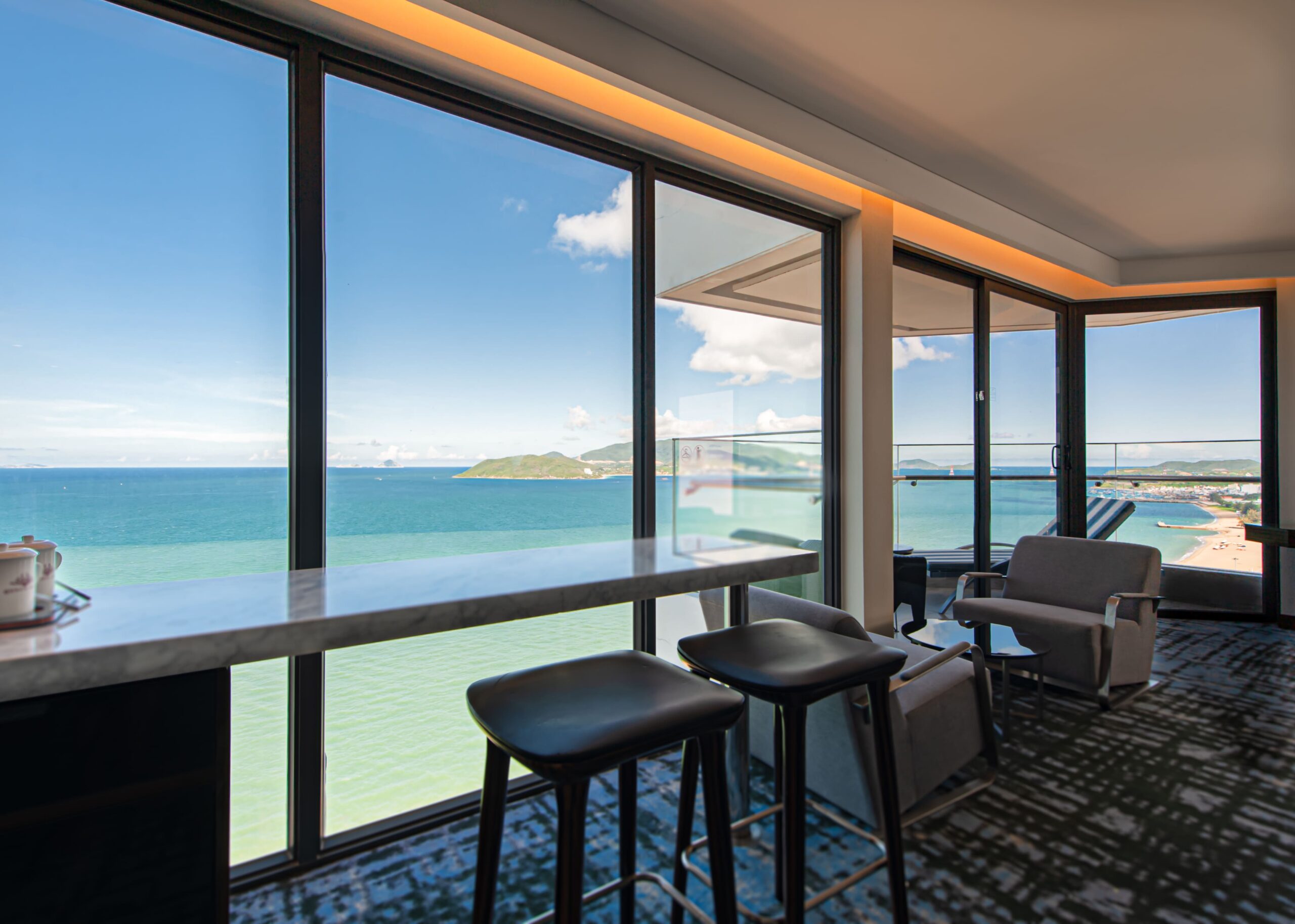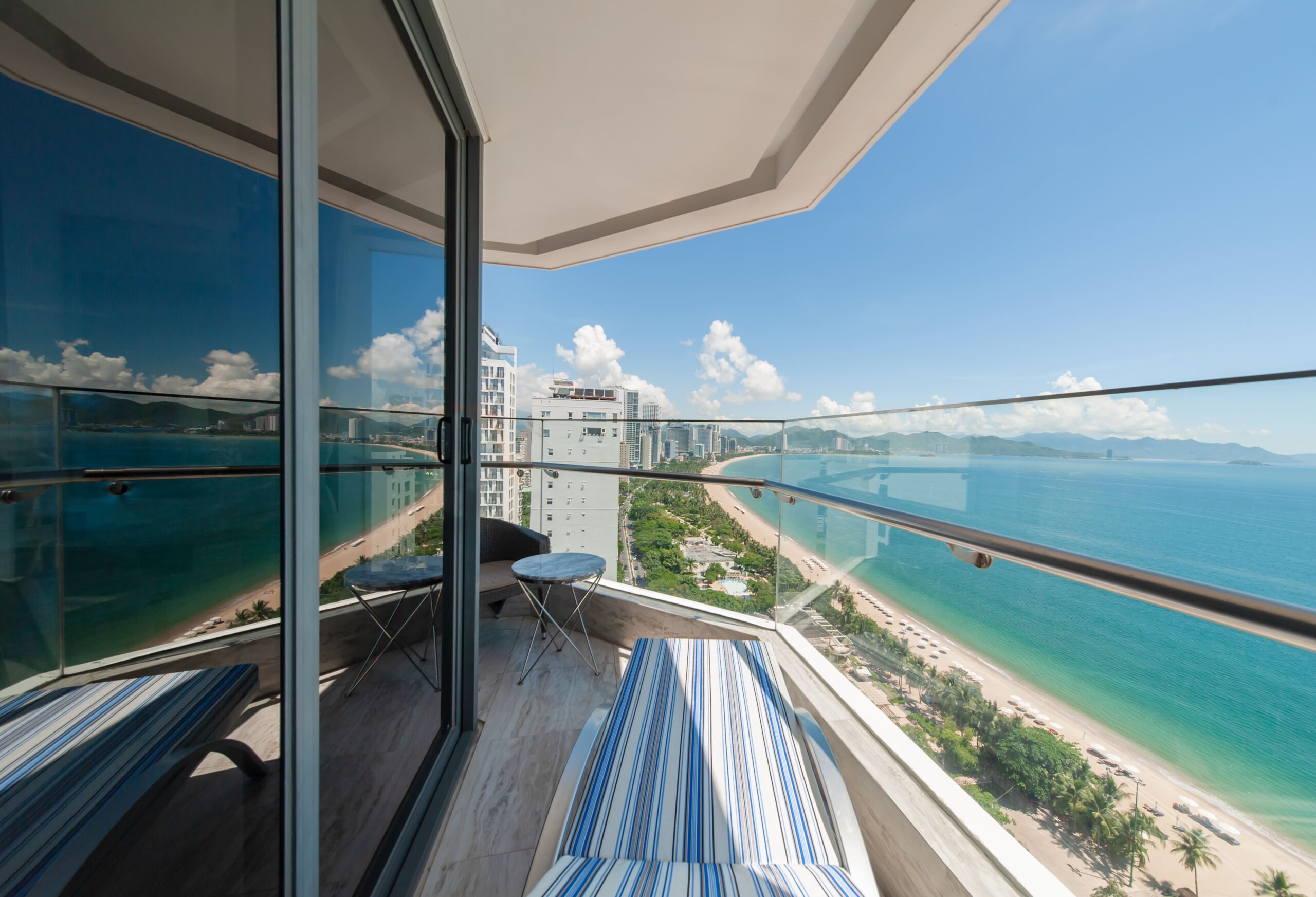 Hướng biển trực diện, toàn cảnh đại dương, 1 giường lớn có Ban công ( Giá bao gồm 2 người lớn vs 1 trẻ em dưới 6t )